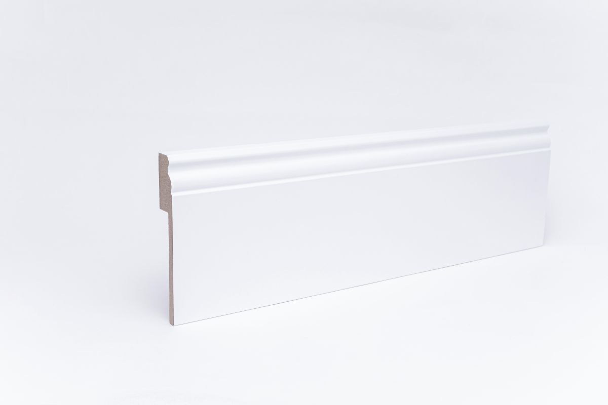 Die Abdeckleiste hat einen Kern aus MDF ( MDF - mitteldichte Holzfaserplatte). Dadurch erhält die Sockelleiste ausreichend Flexibilität, sowie Stabilität. Die Qualitäts-Dekorkaschierung lässt die Abdeckleiste nicht nur in einer tollen Optik erstrahlen, sonern erzeugt auch eine schutzende Eigenschaft. Die Oberfläche ist dadurch kratzbeständig und macht die Fußleiste langlebig.