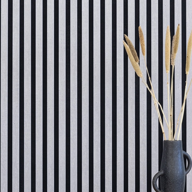 Lamellenverkleidung - Wandverkleidung - Akustikpaneel 600 x 2400 mm Beton - Akustikfilz Schwarz