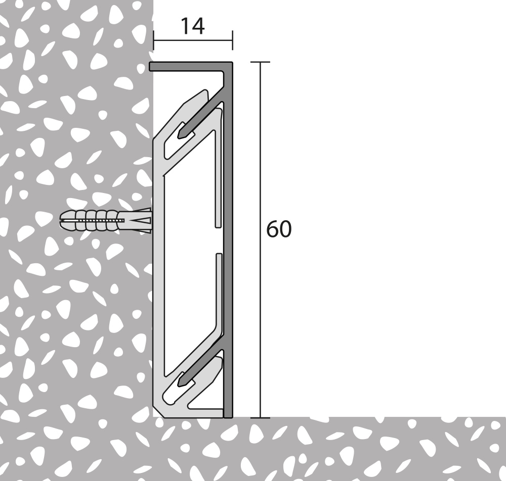 "Cultus45" Aluminium-Sockelleiste 60 x 14 mm