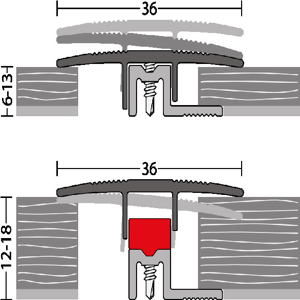 Übergangsprofile aus Aluminium bilden den würdigen Abschluss Ihres individuellen Bodenbelags. Die Parkettprofile werden einfach auf das dazugehörige Unterprofil gesetzt und verschraubt. So entsteht eine langlebige Profiqualität. Die Übergangsprofile sind in den zeitlos klassischen Farben Gold, Silber und Bronze erhältlich, oder in vielen Varianten in realistischer Holzoptik. Durch die Einstellung bis zu einer Bodenhöhe von 17,5 mm sind unsere Übergangsprofile ideal für Parkett und Laminat geeignet.