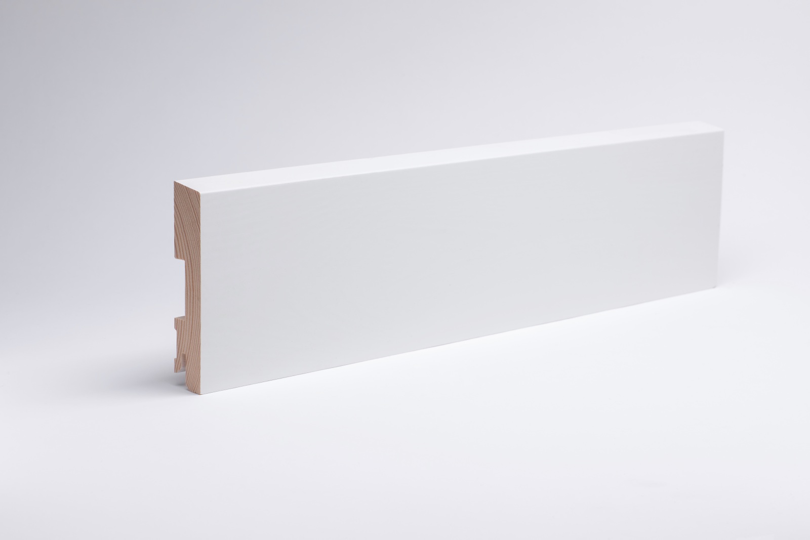 Diese Sockelleisten, werden aus hochwertigen Massivholz, mit deckend weiß lackierter Oberfläche und einer abgeschrägten Vorderkante gefertigt.
