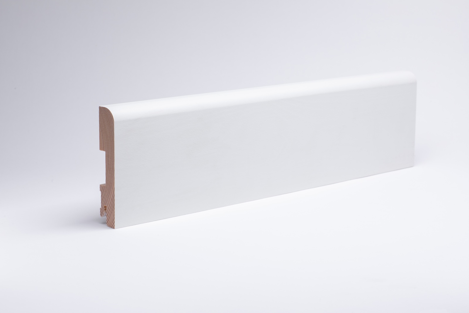 Diese Sockelleisten, werden aus hochwertigen Massivholz, mit deckend weiß lackierter Oberfläche und einem Rundkanten-Oberprofil gefertigt.