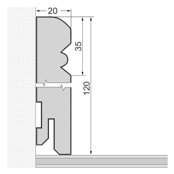 Alt-Reno Profilleisten zeichnen sich durch eine abgerundete Vorderkante und eine Tiefenfräsung aus. In den Abmaßen 120mm x 20mm x 2400mm finden Sie hochwertige Alt-Reno Profilleisten jetzt zu günstigen Preisen in unserem Online-Shop für Fußleisten und mehr - Leiste24.