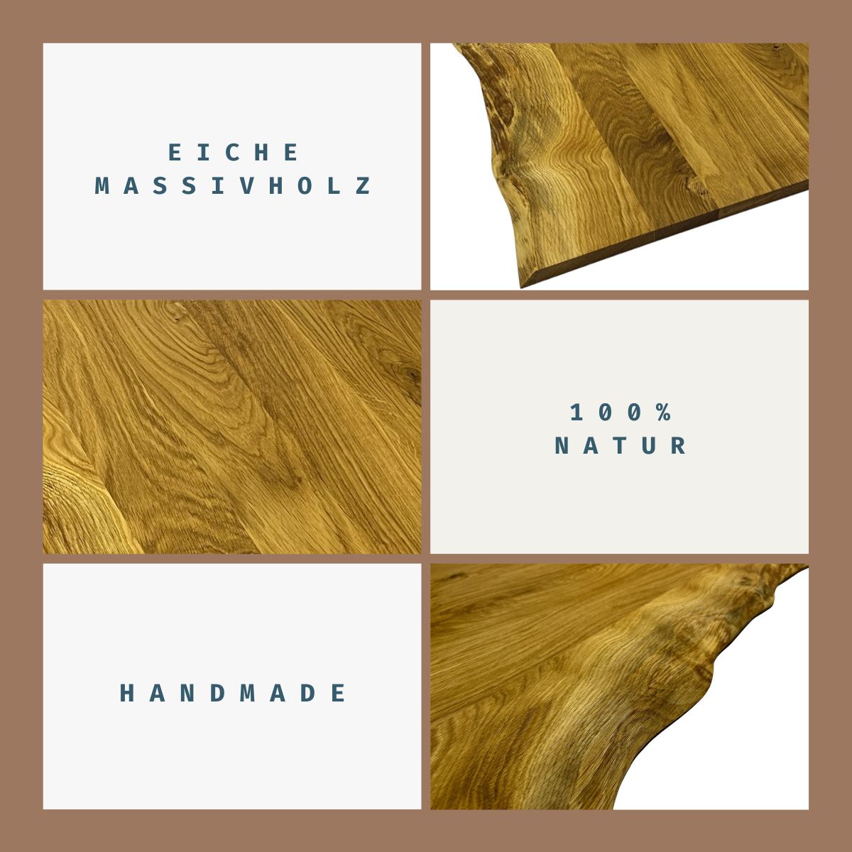 Massivholzbrett Eiche 40 mm mit einseitiger Baumkante - robuste Qualität trifft auf natürliche Schönheit