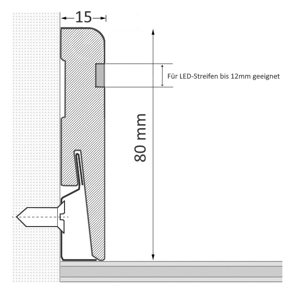 Die Sockelleisten im Weimarer Profil lassen sich einfach und stabil an der Wand montieren und bieten eine langlebige Lösung für Wohn- und Geschäftsräume. Ob als stilvolles Detail oder funktionale Ergänzung - diese Leisten überzeugen durch ihre zeitlose Optik und Qualität. Für eine unkomplizierte Montage bieten wir passende Clips separat an. Der Preis in unserem Shop bezieht sich auf eine einzelne Leiste.