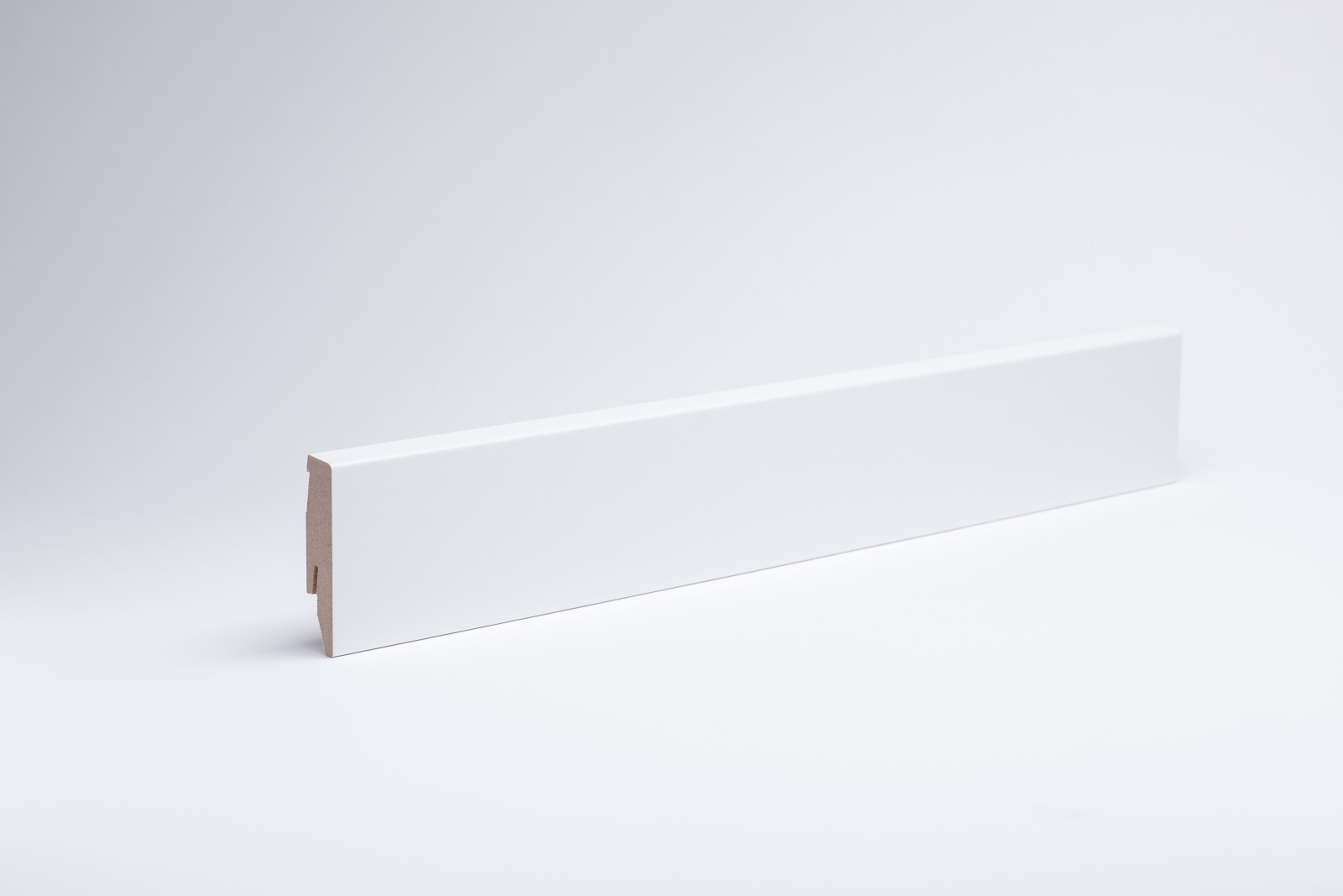Die Fußleiste hat einen MDF-Kern (MDF-mitteldichte Holzfaserplatte). Dieser gibt der Fußleiste ausreichend Flexibilität sowie Stabilität.