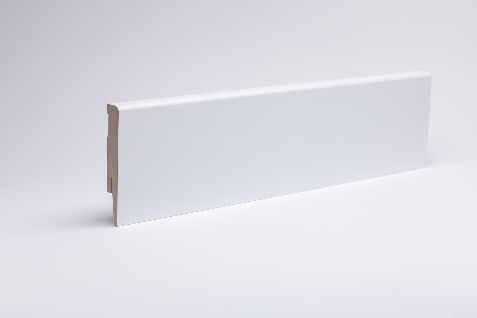 Die Fußleiste hat einen MDF-Kern (MDF-mitteldichte Holzfaserplatte). Dieser gibt der Leiste ausreichend Flexibilität sowie Stabilität.