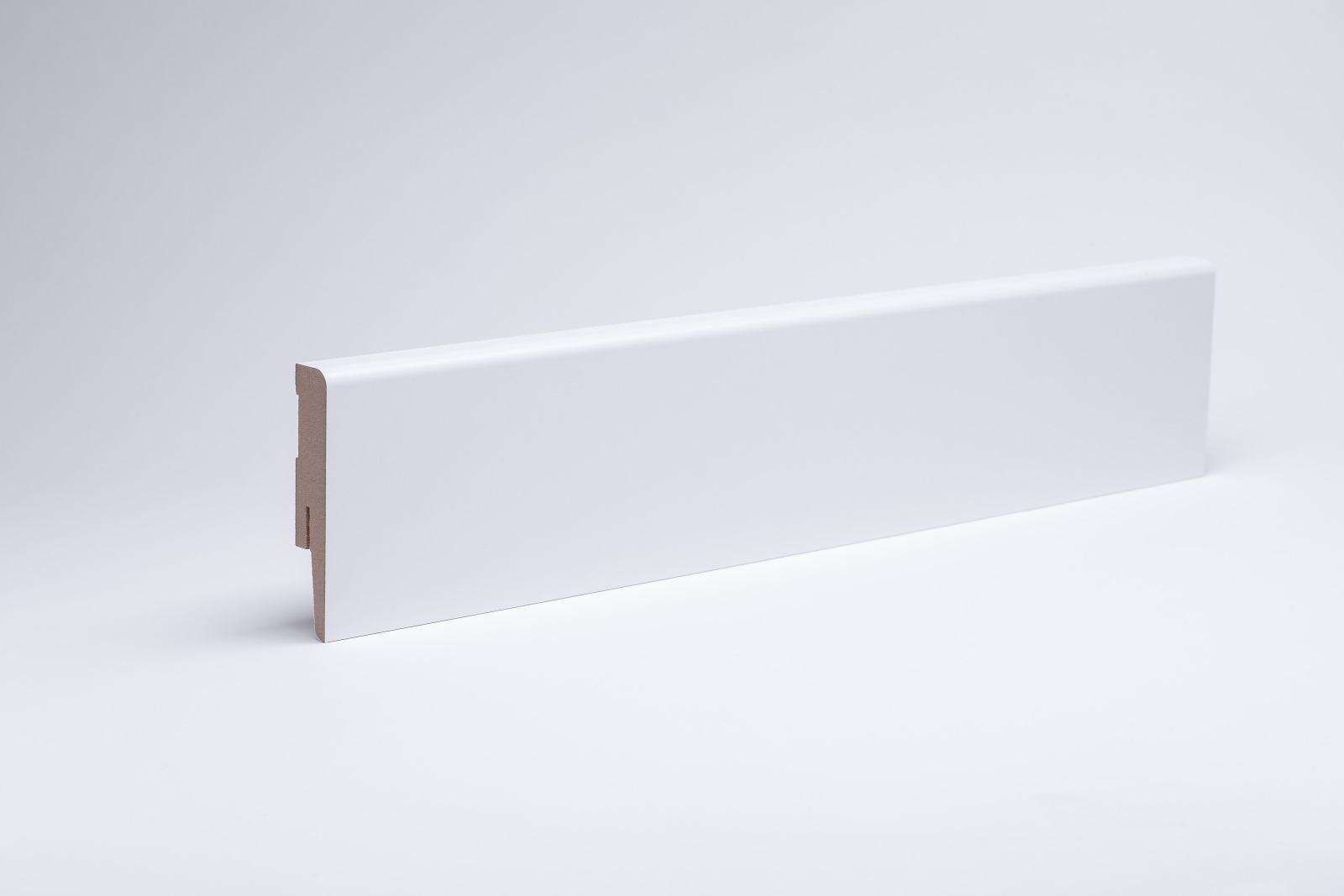 Die Fußleiste hat einen MDF-Kern (MDF-mitteldichte Holzfaserplatte). Dieser gibt der Leiste ausreichend Flexibilität sowie Stabilität.
