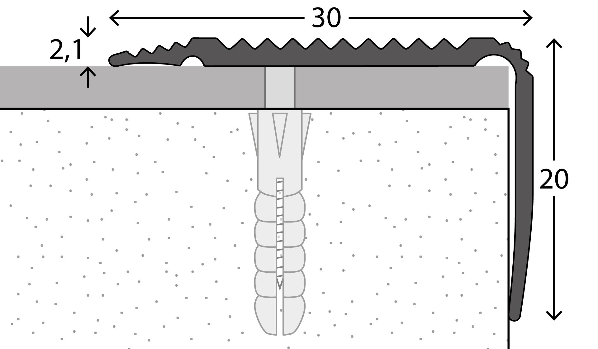 Das Treppenkantenprofil 45 x 40 mm schützt zuverlässig die Kanten des Bodenbelags auf einer Stufenkante. Die gerillte Oberfläche erhöht zusätzlich die Sicherheit auf der Stufenkante.