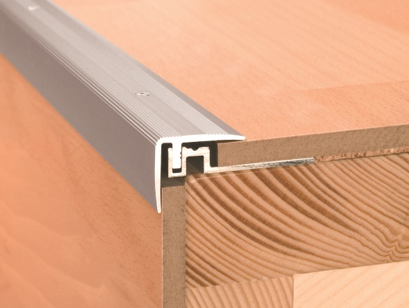 Das Treppenkantenprofil - Silber mit Schraubsystem, ist konstruiert für die Verarbeitung von Laminat, mehrschichtigen modularen Belägen sowie Parkett mit Belagsstärken von 7 - 15mm.
