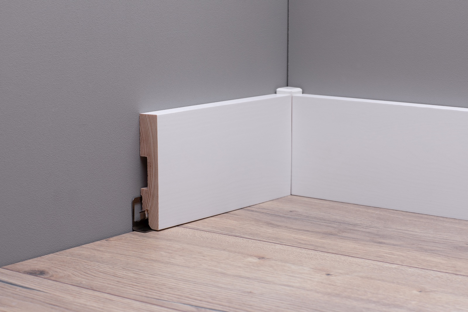 Die Sockelleisten sind aus hochwertigem Kiefern-Massivholz gefertigt und dadurch robust und langlebig. Die Oberfläche ist im modernen Farbton RAL9010 deckend weiß lackiert. Die hochwertige Lackierung schützt das Holz zudem vor äußeren Einflüssen und erzeugt eine wundervolle Optik mit einzigartiger Holzmaserung.