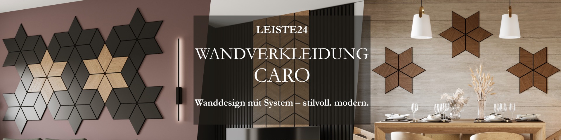Unsere CARO Wandverkleidung bringt mit ihrem markanten Rautenmuster eine moderne, geometrische Formensprache an Ihre Wände. Die Designs verbinden ästhetische Eleganz mit funktionalem Nutzen für Räume mit Charakter.