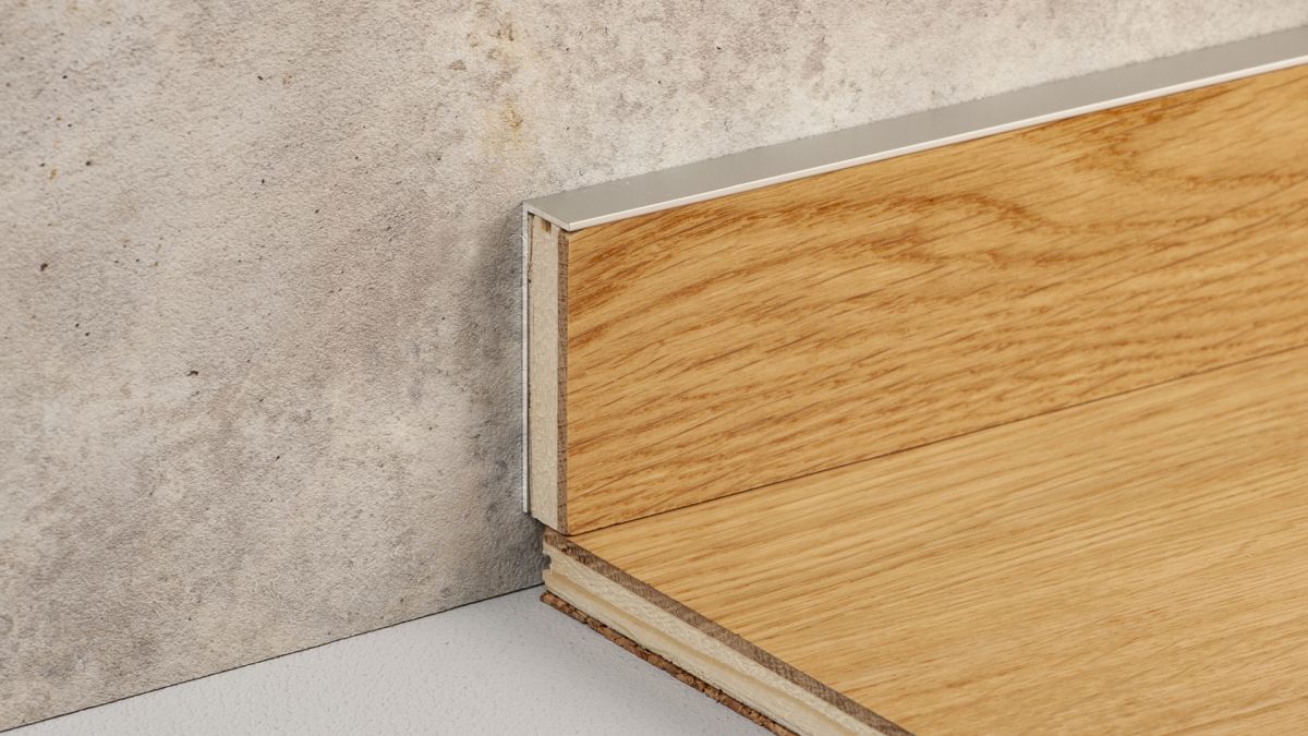Die Leiste liegt dicht an der Wand an und überzeugt durch eine makellose Aluminium-Oberfläche. Mit dem kurzen Schenkel nach oben montiert werden aus ihnen dezente Einklebeleisten für Bodenbeläge mit Stärken bis 13 mm. So können aus dem verarbeiteten Bodenbelag Sockelleisten im identischen Dekor gestaltet und überschüssiges Material effizient genutzt werden.