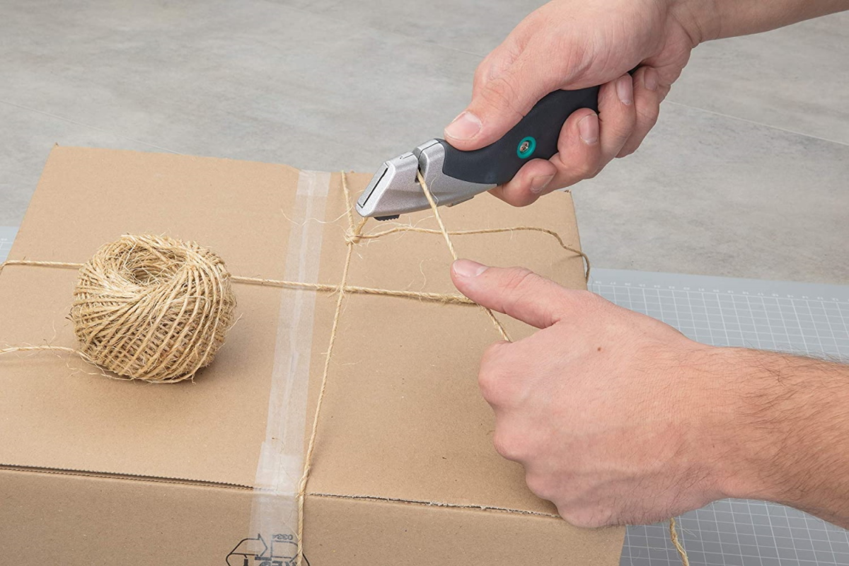 - mit Kordelschneider und integriertem Klingenmagazin, inklusive 3 Ersatzklingen